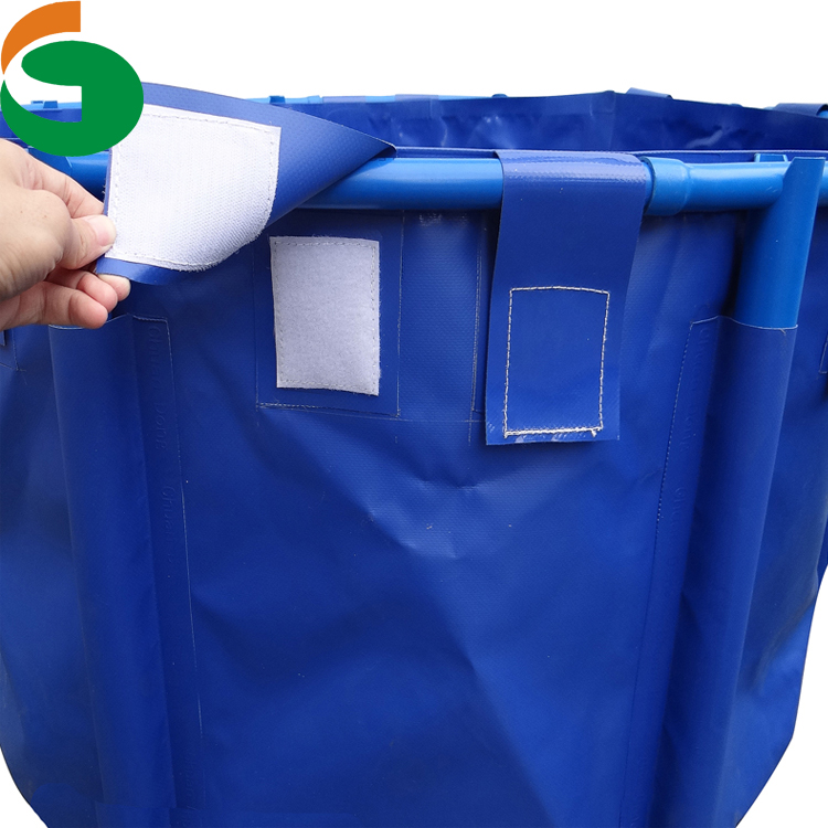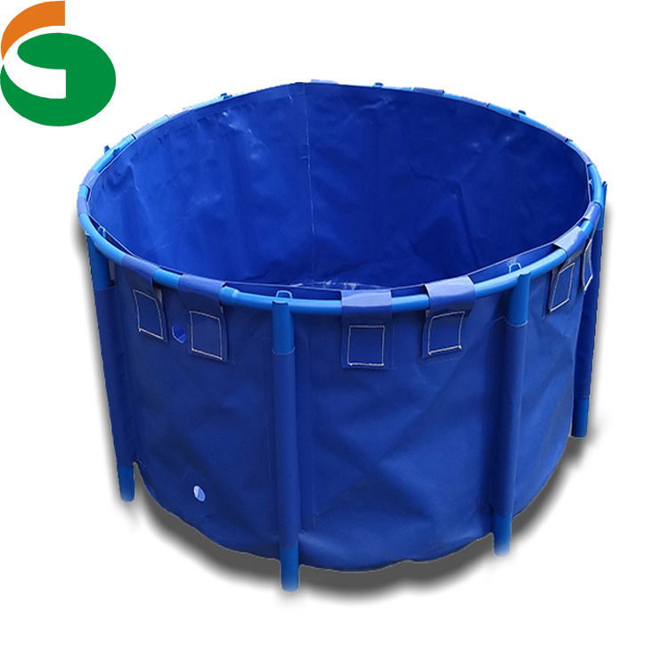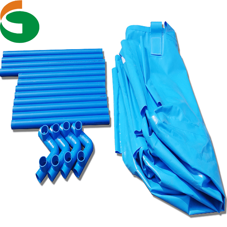 该产品为两部分组合而成,支架部分:金属管和塑胶管。布料部分:高强涤纶丝+PVC涂层,底部或侧部安装有排水阀门,可自由控制水位。支架为组合式,帆布可折叠,这样就满足不同客户的实际需求,移动携带非常方便,支架规格/布料颜色/布料厚度可按客户需求单独设计制作。