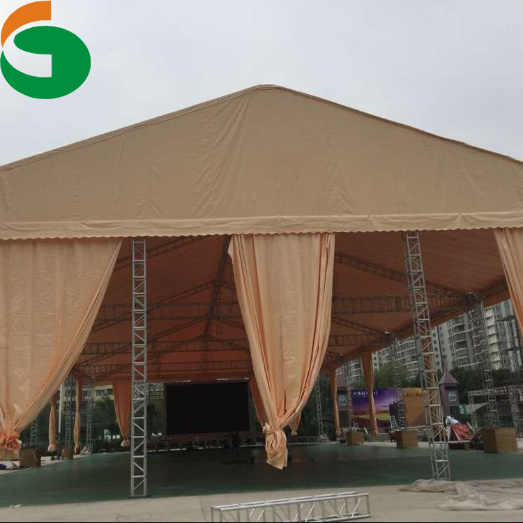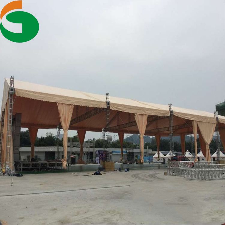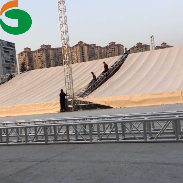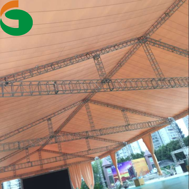1.舞台篷布是根据铝合金舞台桁架形状(如三角形、圆弧形、球型及半球形等),经设计师精密设计,用数控裁剪后,用专用设备加工而成,用来遮风挡雨,防晒的篷布,也可按客户要求定制各种异形的篷布,还可根据客户的需求选择不同的加工工艺及布料的颜色等.