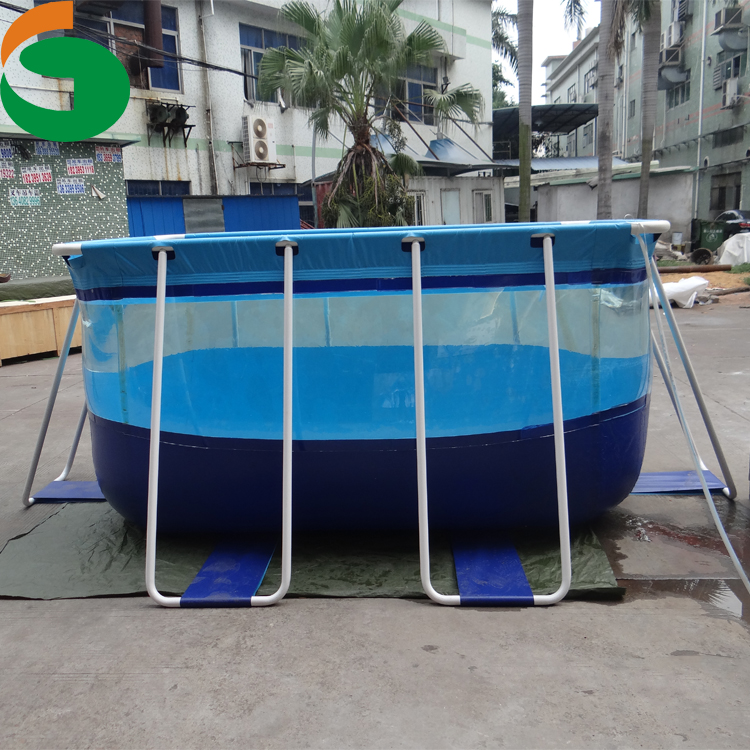 支架游泳池是由钢架和夹网聚氯乙稀PVC布料组合而成的。主体为钢管支撑,池体采用水池专用尼龙精编双面PVC涂层布高