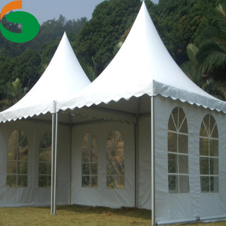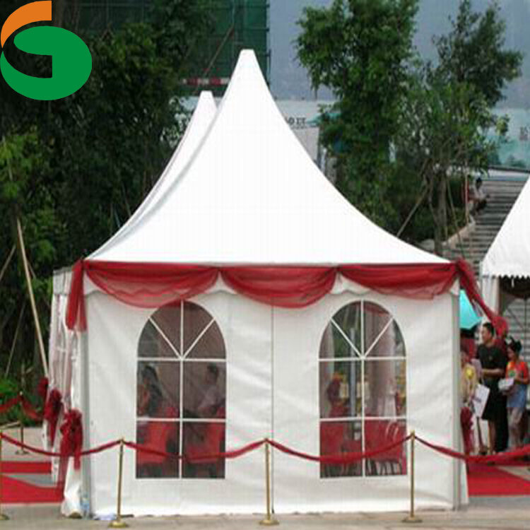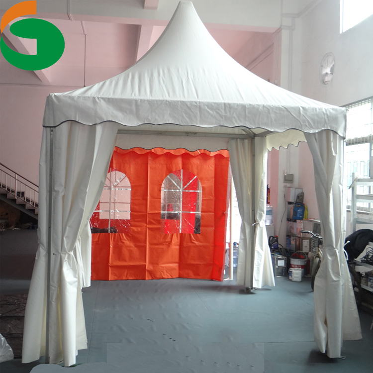 第三种是锥顶篷房。底面呈正方形,篷房顶像塔尖一样,外形高雅。